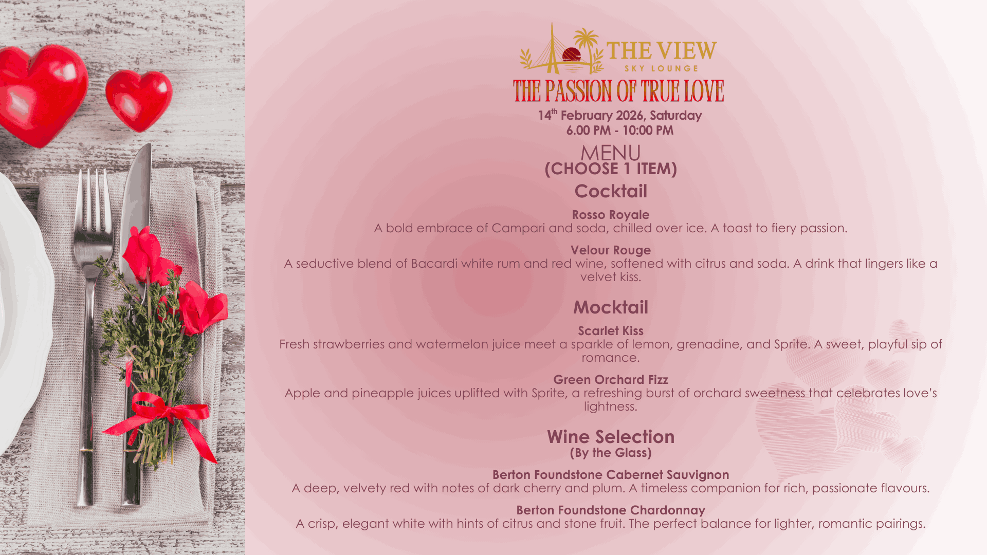 THE PASSION OF LOVE (VALENTINE'S DINNER)